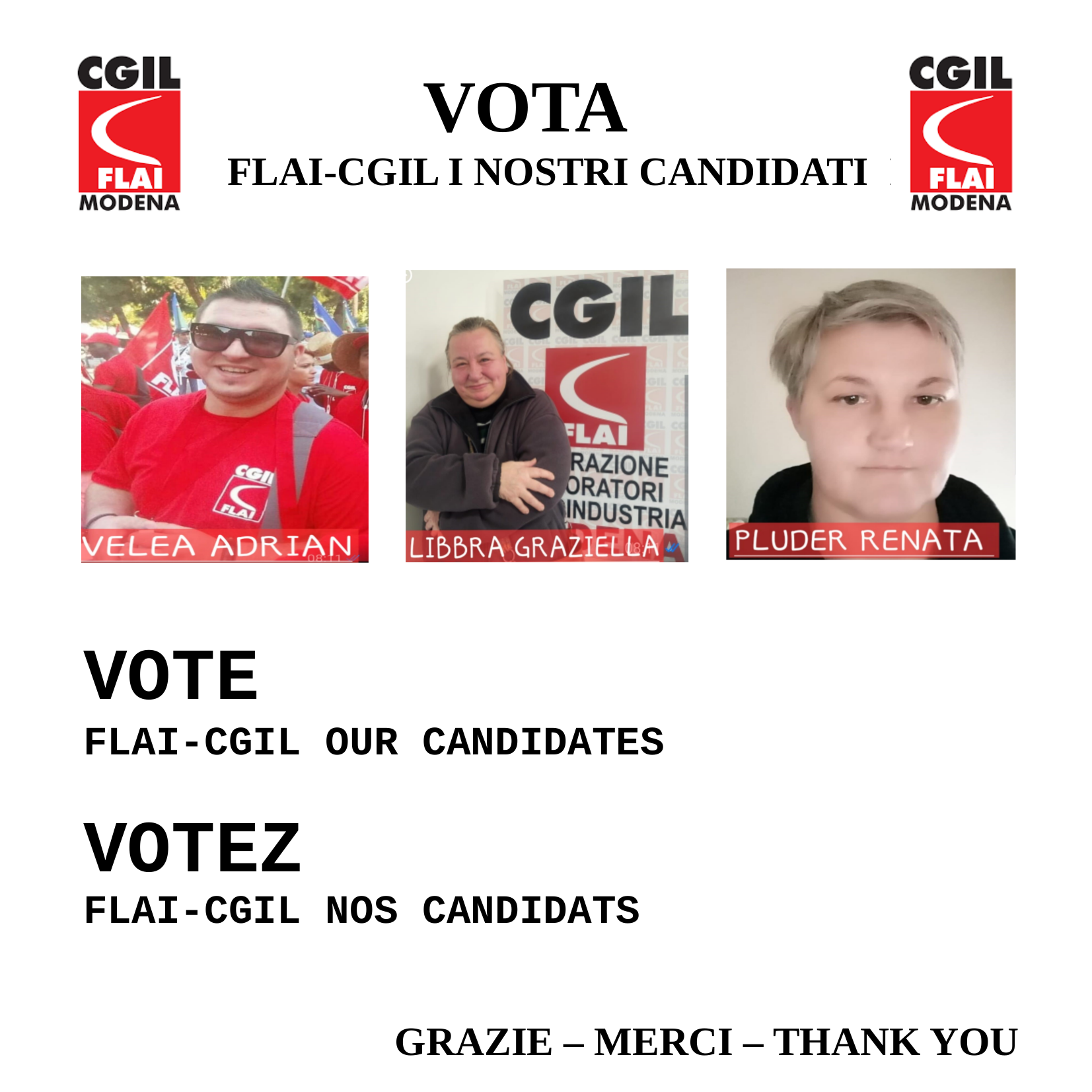 Per questi motivi invitiamo lavoratrici e lavoratori a partecipare al voto ed a votare per la lista Flai Cgil Modena.