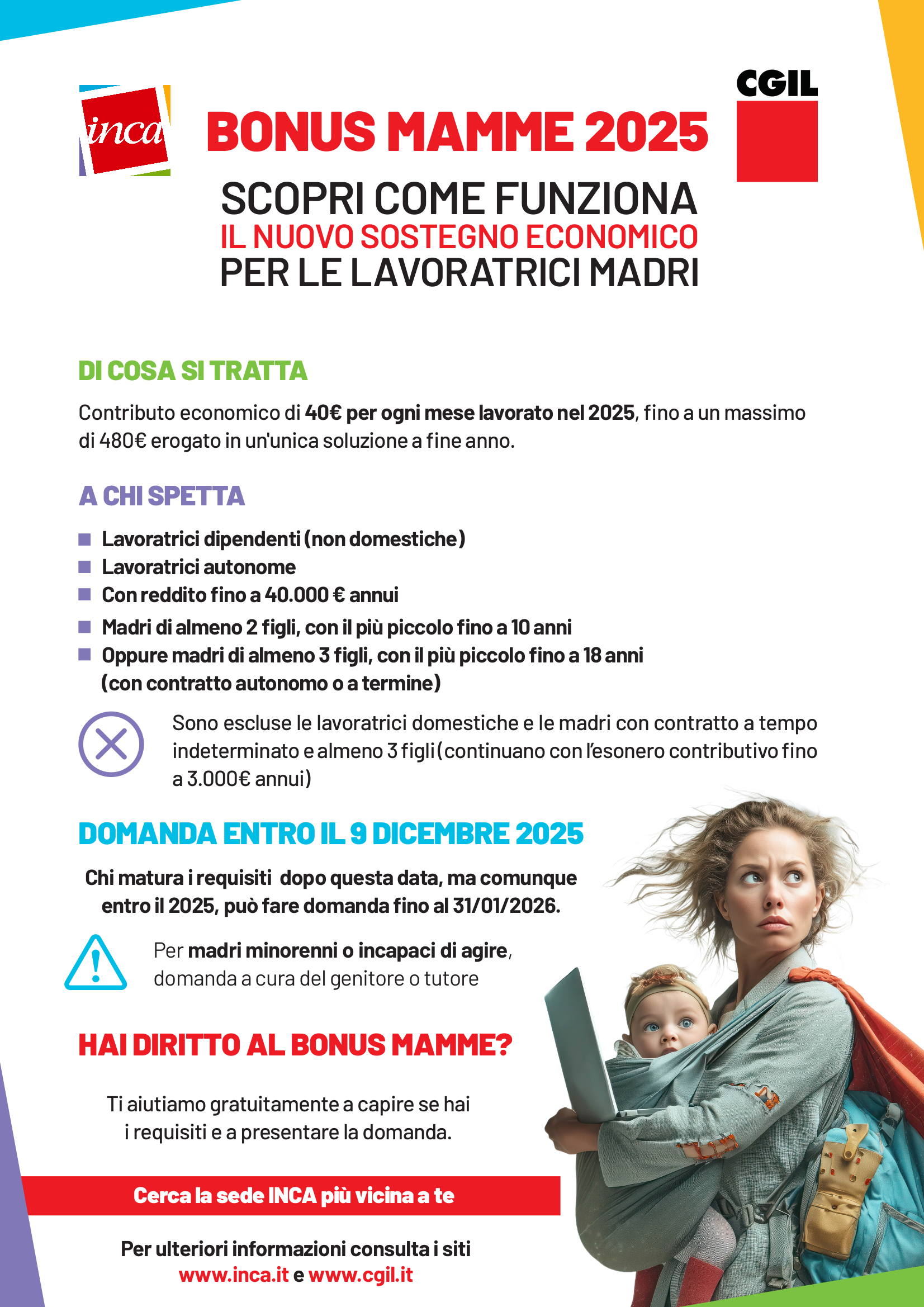 01 Nov 2025 area diritti, bonus mamma, patronato inca,
