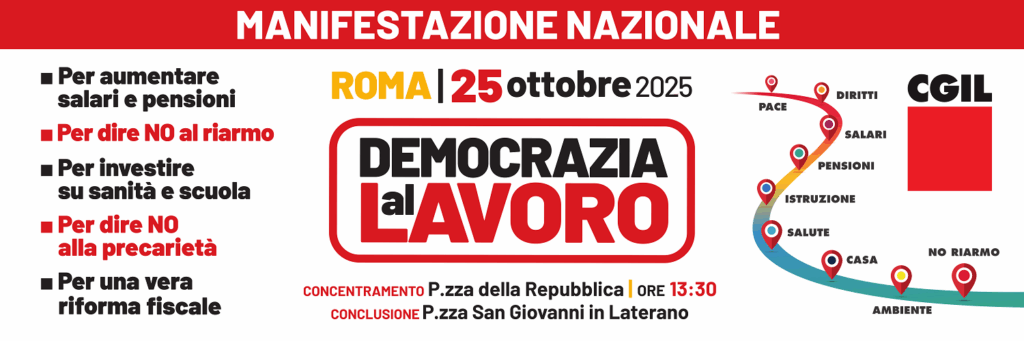 La Cgil ha lanciato la manifestazione insieme alle associazioni de “La Via Maestra” per unire i temi del lavoro a quelli della pace, la lotta per l’aumento dei salari e delle pensioni ai diritti sociali e per rivendicare una diversa impostazione della prossima Legge di bilancio, rifiutando gli investimenti per il riarmo. Una manifestazione con l’obiettivo di spostare gli investimenti della prossima Finanziaria su aumento di salari e pensioni, contrasto alla precarietà e al lavoro povero, sanità, istruzione e servizi pubblici.