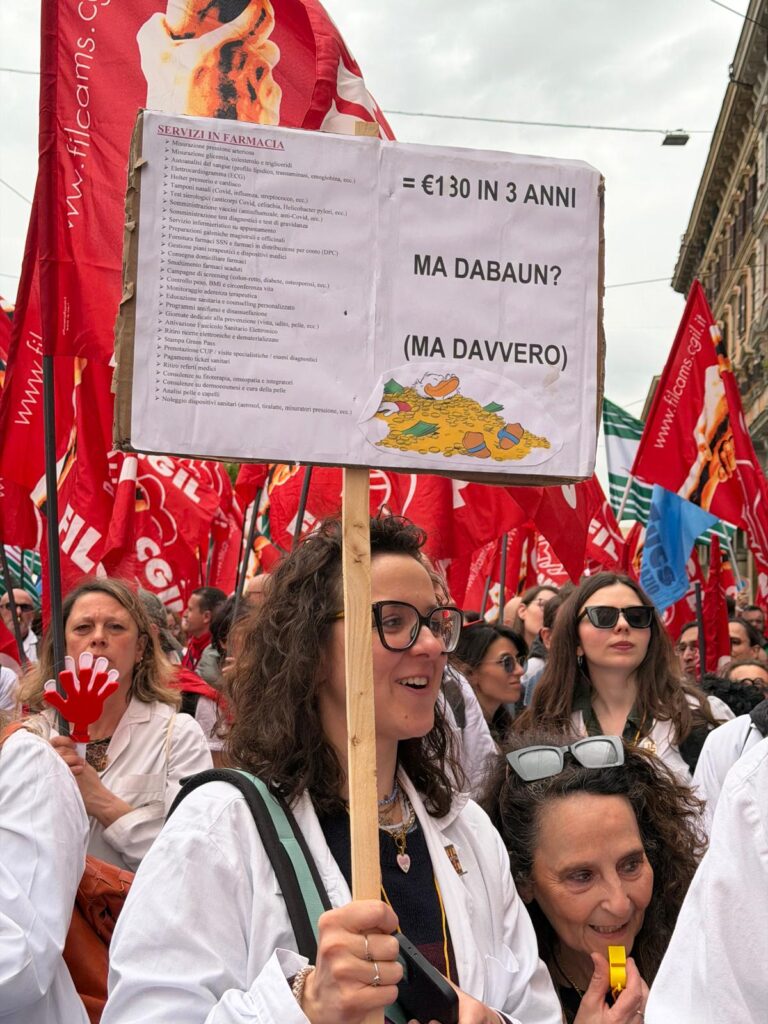 “La protesta di oggi è un segnale forte – proseguono Cataldo, Martignetti e Tollari – in risposta ad un atteggiamento inaccettabile: un’associazione datoriale che continua ad avere come unico obiettivo quello di tenere basso il costo del lavoro, non certo di tutelare farmaciste e farmacisti, collaboratrici e collaboratori. Lavoratori e sindacati vogliono invece riportare al centro del confronto il valore del lavoro nelle farmacie private e la necessità di un rinnovo contrattuale che restituisca dignità salariale, attrattività professionale e prospettive di crescita nel settore”.