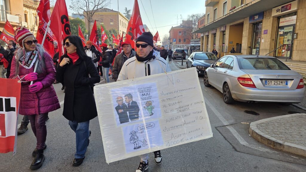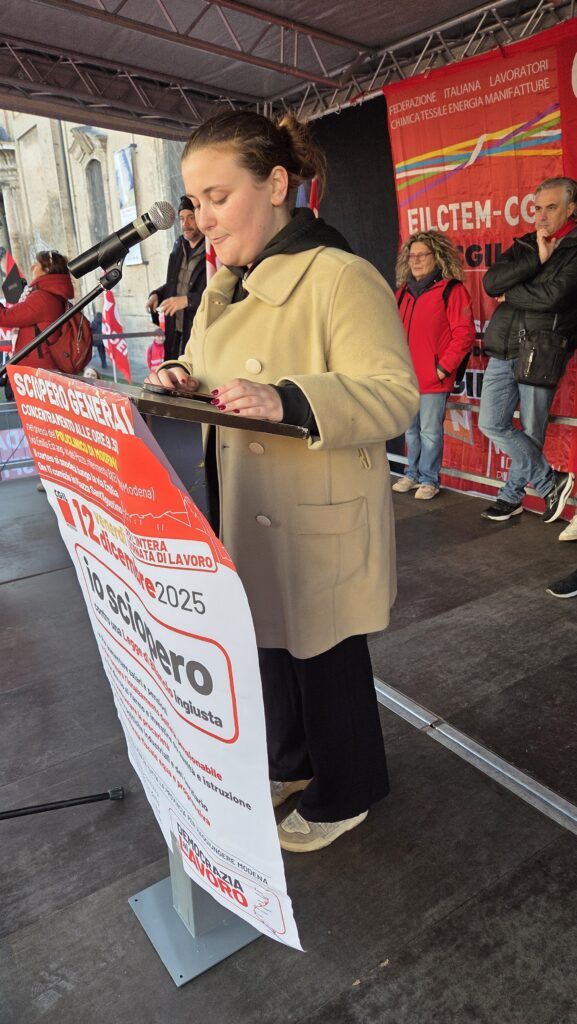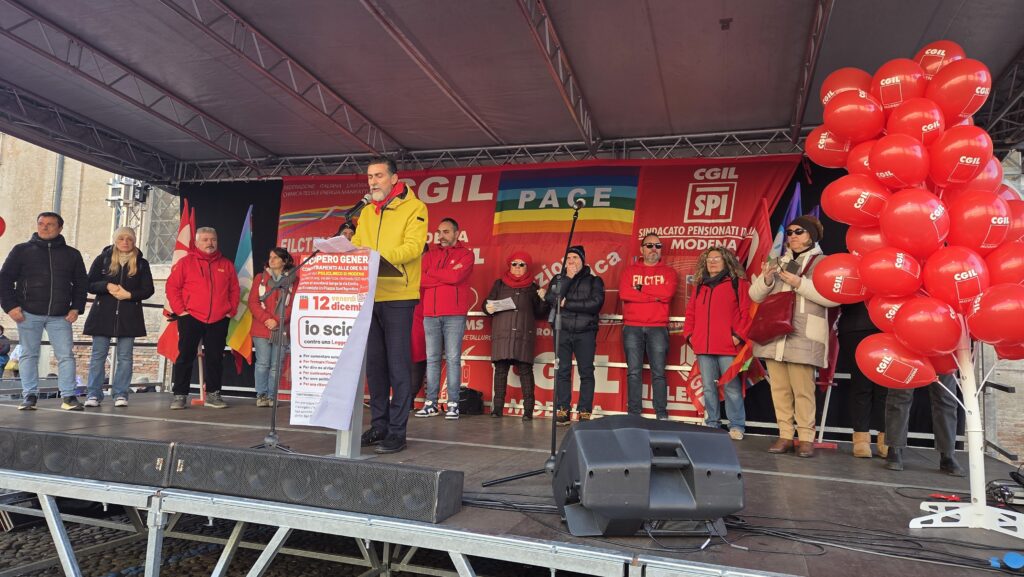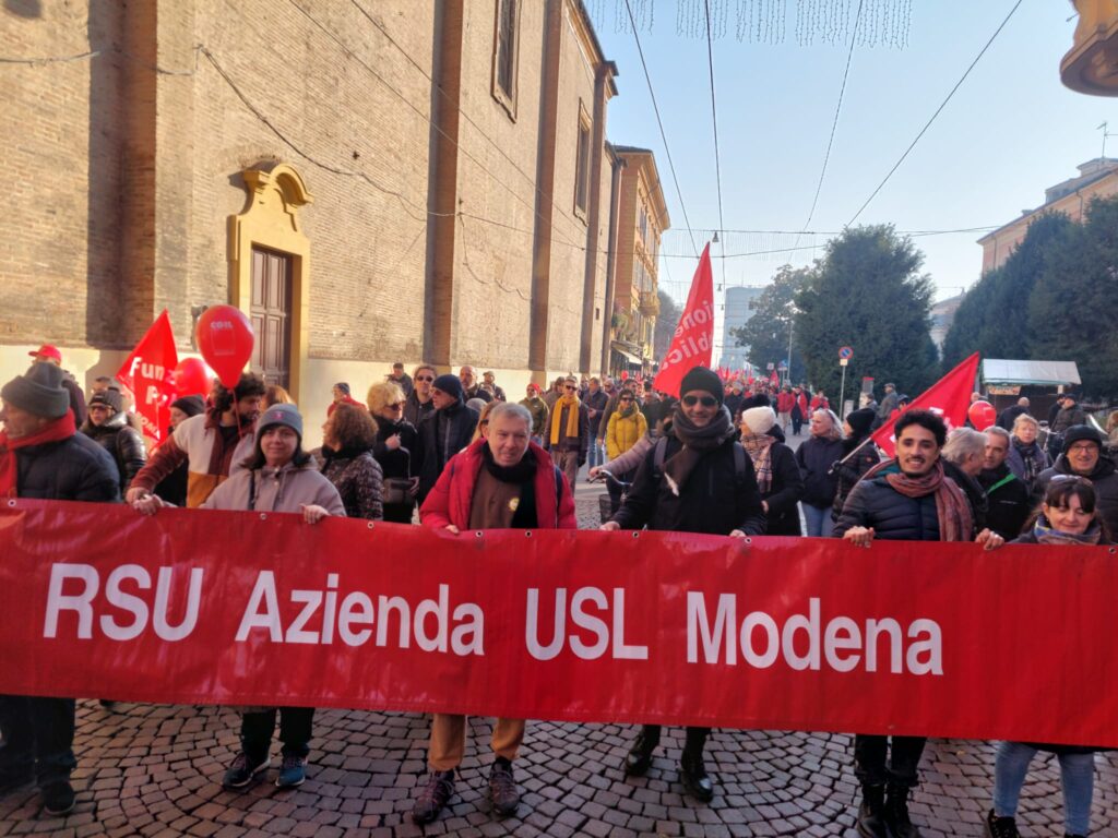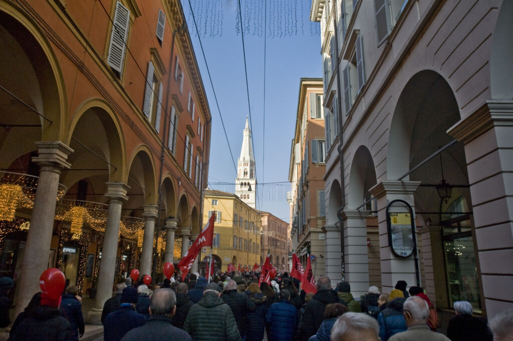 Erano previsti anche gli interventi di un’insegnante della scuola dell’infanzia Unione Terre d’Argine e del sindacato inquilini Sunia, che sono saltati all’ultimo momento per problemi di scaletta e di durata della manifestazione. Su temi comunque altrettanto importanti come la mancata firma della Fp Cgil nel rinnovo dei contratti pubblici (Enti locali, Sanità, Funzioni centrali) per l’inaccettabile proposta del Governo sul recupero dell’inflazione al 5,8% (contro l’inflazione reale nel biennio del 16,5%), che programma di fatto la riduzione del potere d’acquisto dei lavoratori pubblici. O i temi del caro affitti a Modena, il fenomeno speculativo delle camere in affitto, le difficoltà per i giovani a cercare alloggi a prezzi accessibili, l’aumento degli sfratti e la carenza di alloggi pubblici.
