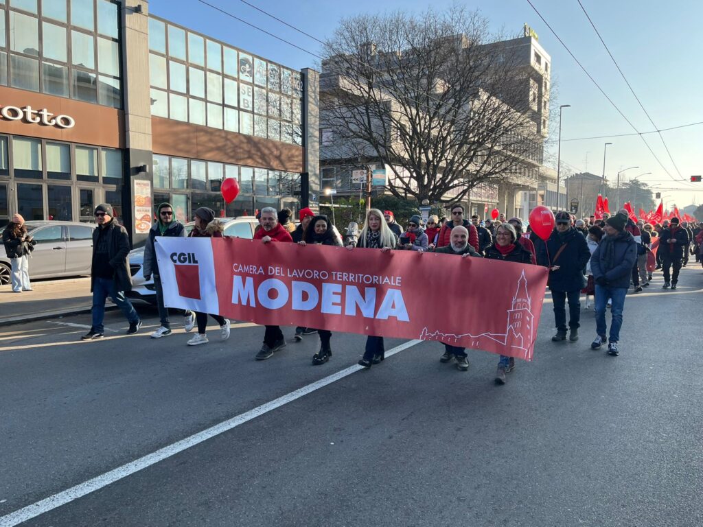 In manifestazione hanno partecipato oltre 10.000 modenesi tra lavoratori, pensionati, studenti e cittadini.
