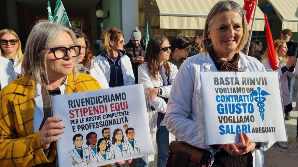 Erano oltre centocinquanta tra farmaciste e farmacisti a manifestare stamattina giovedì 6 novembre davanti alla sede di Federfarma di Modena per chiedere rispetto, tutele e il rinnovo del contratto nazionale che riconosca il valore sociale e professionale di chi opera nelle farmacie private e garantisce quotidianamente un servizio essenziale per la salute dei cittadini. L’acquisizione di nuove competenze e l’aumento di responsabilità vanno riconosciuti: Federfarma invece propone l’aumento di 180 euro in tre anni, cifra che non tiene conto della realtà né della professionalità.
