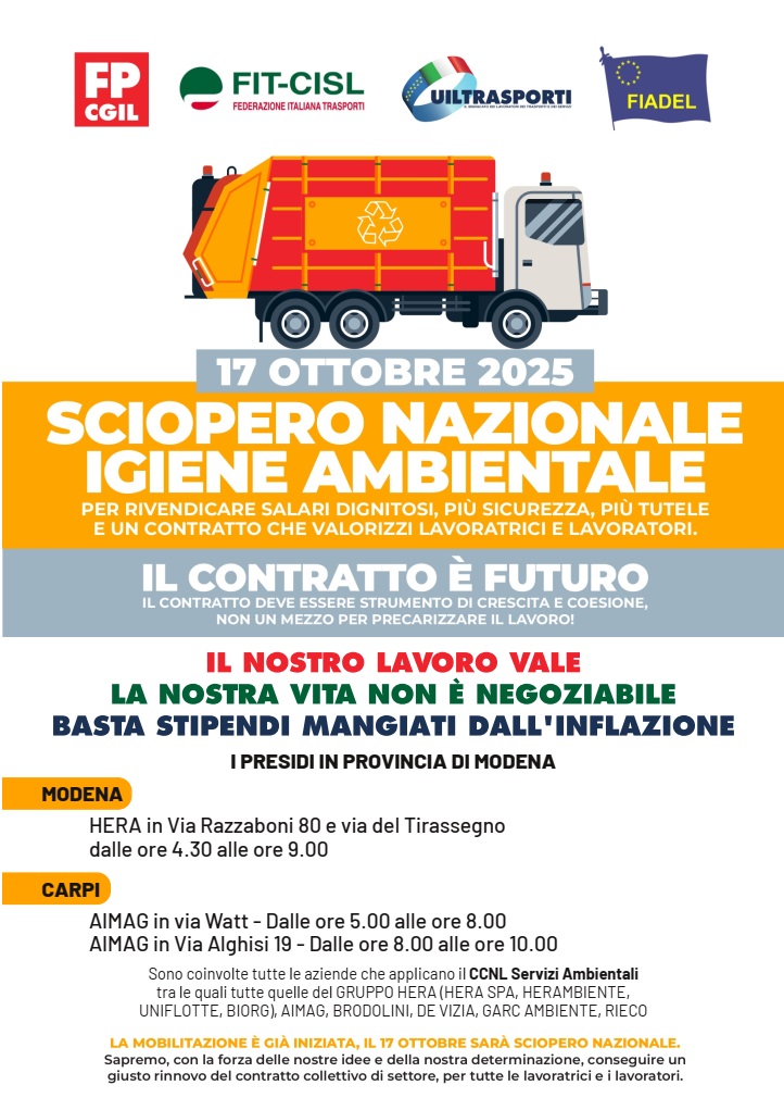 14 Ott 2025 ccnl igiene ambientale, fp, igiene ambientale, presidio, sciopero,