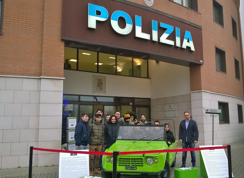 La Citroen Mehari in Questura a Modena per l’iniziativa sulla malavita organizzata al Nord, 13.12.16
